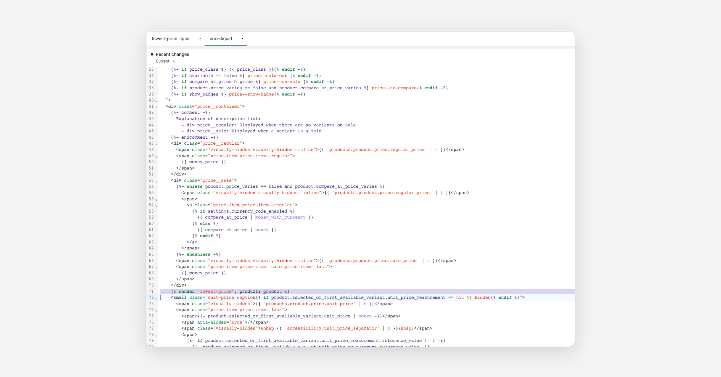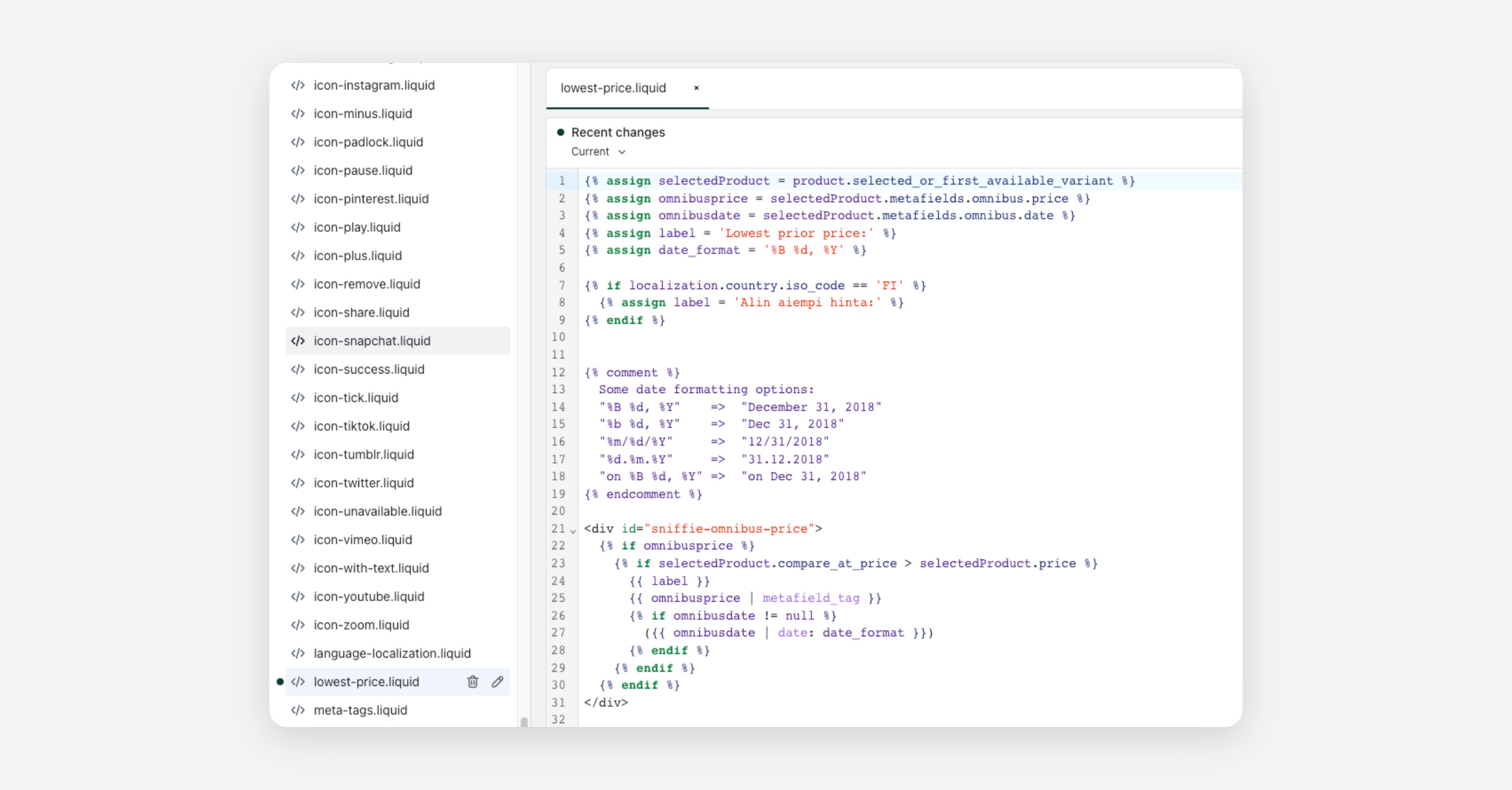 Next select the lowest-price.liquid file you created earlier. Replace the line
