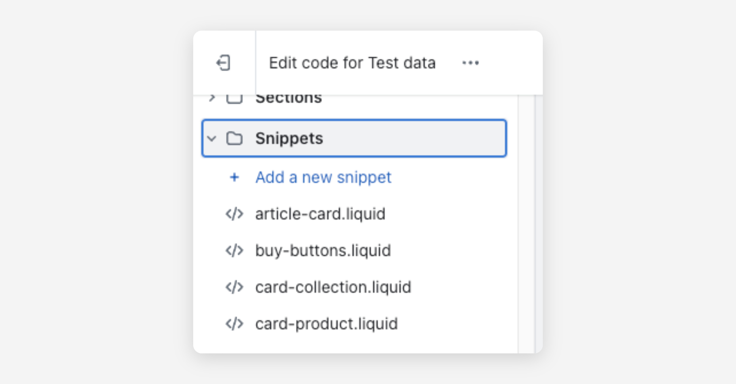 In the left sidebar of the theme editor, open the Snippets folder and click Add a new snippet (image below). Give it a name, for instance: lowest-price.liquid