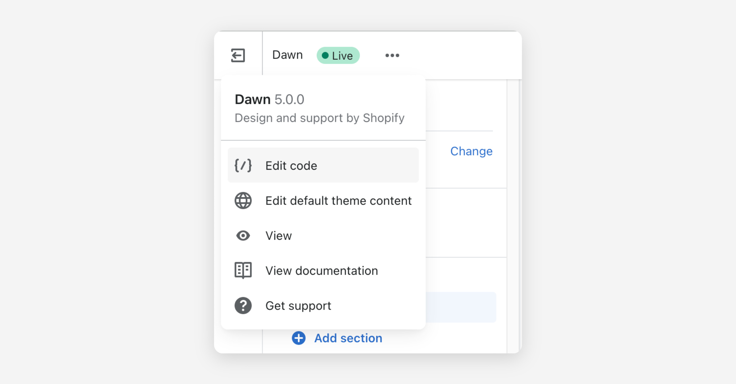 If your theme does not allow adding extension blocks to show data created by our app, you will need to manually edit the template code. This is the case when you want to display the lowest price information in a product card on Dawn-based themes.